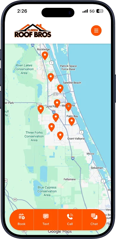 Florida Roof Bros serves Brevard County, Pinellas County, and surrounding areas in Central Florida. From our Palm Bay location, we cover cities like Melbourne, Merritt Island, Rockledge, and Vero Beach. From our Clearwater location, we service Pinellas County and the greater Tampa Bay area.